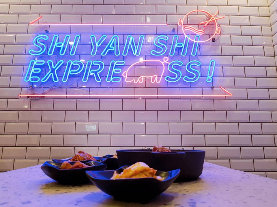 超好拍的網美霓虹燈&石頭鍋現炒料的「石研室Express」,光是置身美食街就超吸睛~