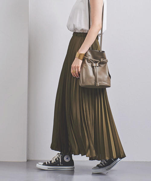 經典的百褶裙裝即使是素色款式也能輕易地讓穿搭吸引目光,藉由打褶設計可以使長裙透過立體的輪廓感打造出搶眼印象,只要選擇簡約的上衣搭配就能有看似精心的打扮。