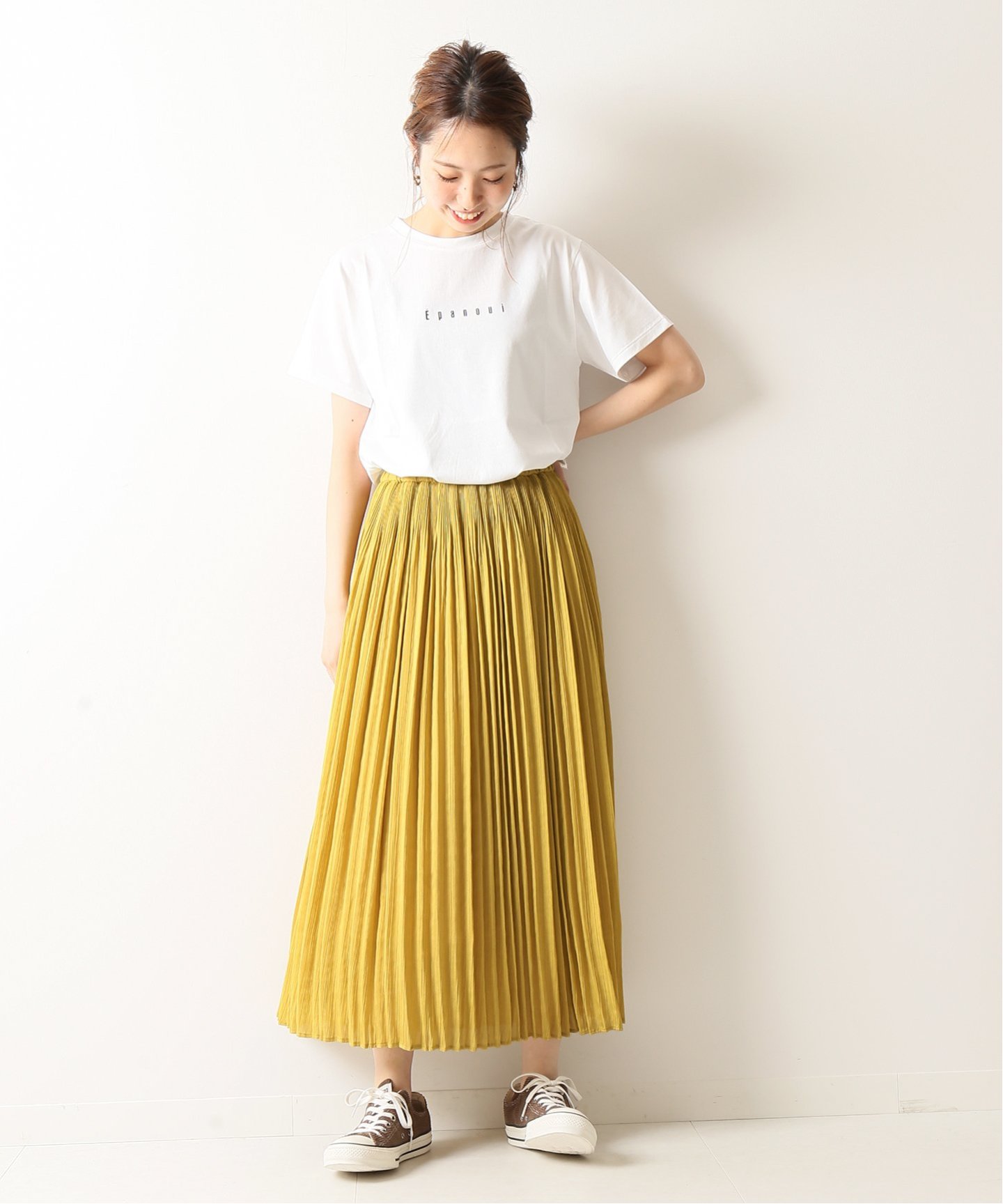 單一色彩的上衣稍嫌沒有變化性,卻又不能捨棄百搭的優點,那麼就利用字母 Tee 來為簡單的造型營造趣味性吧!搭配上百褶長裙就能展演出輕盈的飄逸感受,而透過字母的點綴又可以達到視覺集中的效果。