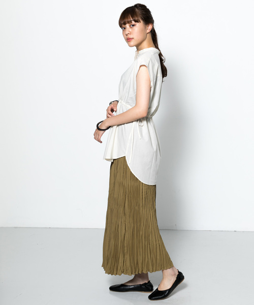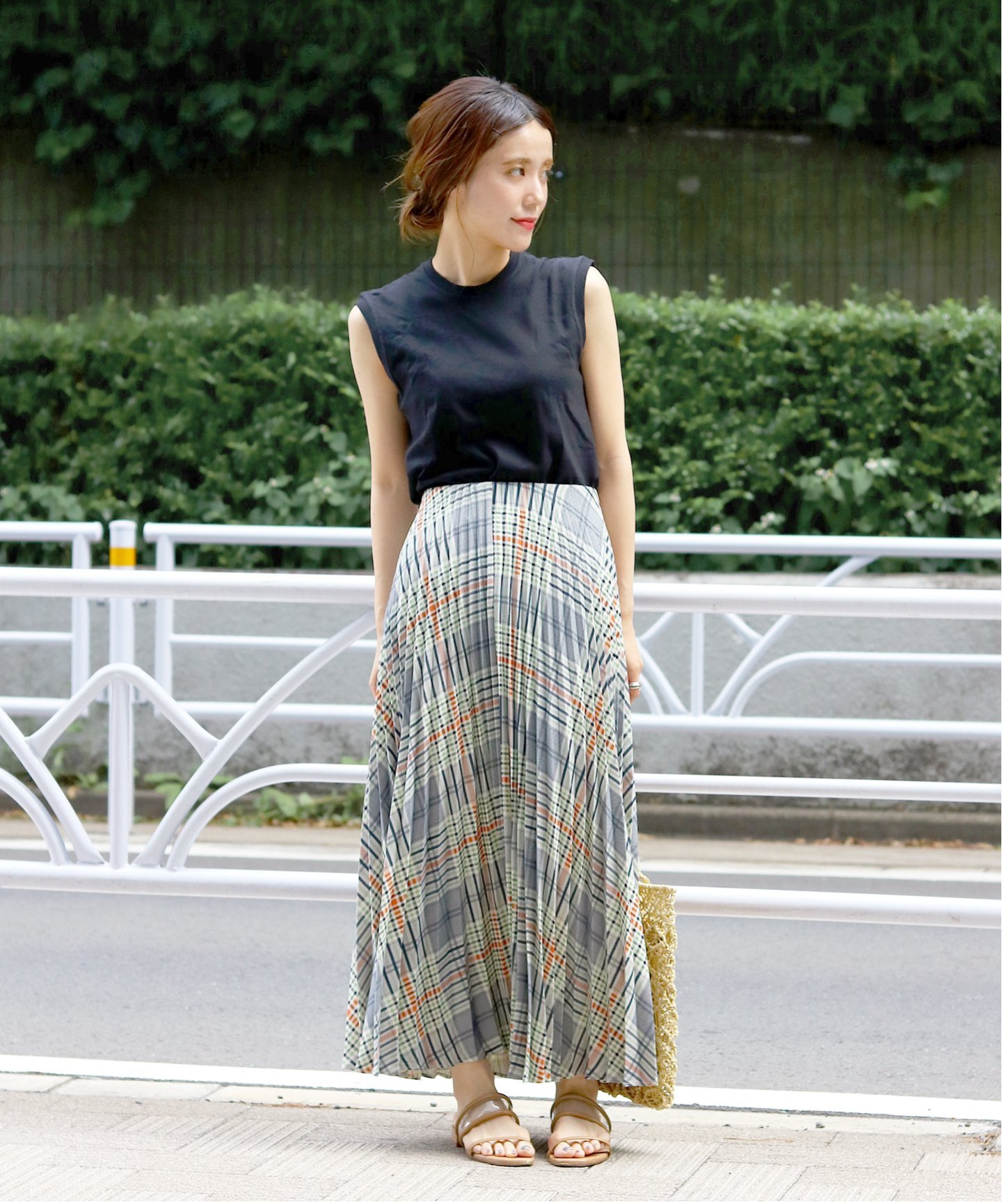 與素 Tee 一樣有著好搭配性,素色的蓋袖背心擁有剛剛好的清涼感卻又不會太裸露在本季相當受到日本女生青睞。選搭印花款的百褶裙讓穿搭的印象感更顯著,再踏上一雙涼鞋就很有季節風格。