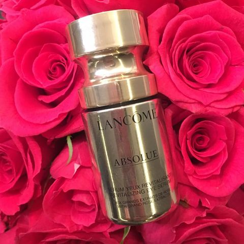 蘭蔻第一款注入「黃金玫瑰瞬效配方」及集結「普拉絲鏈」、「腺苷」與多元維生素B、C、E而成的「澎潤再造複方」,絕對完美黃金玫瑰修護眼霜能分層修護眼角V及眼下大V及小V字部位,一次保養,即有感水潤緊緻、舒緩亮眼等全方位效果。