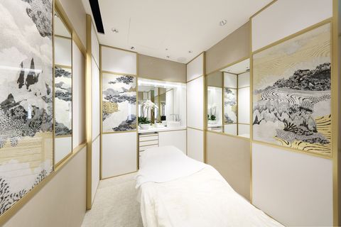 在護膚專家著手按摩臉部肌膚前,先以一連串的程序解譯感官密碼:舒適宜人的床鋪、呼吸練習與眼部運動、溫熱毛巾、根據色光療法隨之變換的情境光線……音效也逐漸流洩而入,使身體進入放鬆狀態,美妍之旅於此開啟。