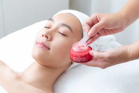 克蘭詩推出全新極緻活齡玫瑰亮采霜,將針對熟齡肌膚設計的抗老日霜,集結溫和煥膚、賦活緊實與修飾透亮三種效能濃縮於一瓶。除有極緻賦活系列核心成份馬達加斯加綠鑽石『有機哈倫加那葉萃取』能有效提升肌膚澎彈緊密度與飽滿度外,更加入了全新配方『玫瑰木槿花萃取』與四色珍珠光,水感滿點的質地,潤澤保濕效果極佳,同時加乘粉嫩、修飾膚色,直接幫肌膚補上美肌光,猶如開啓美肌模式,素顏也能超漂亮。而為此新品也推出頂級尊寵護膚會讓大家體驗.50ml,NT.4,600