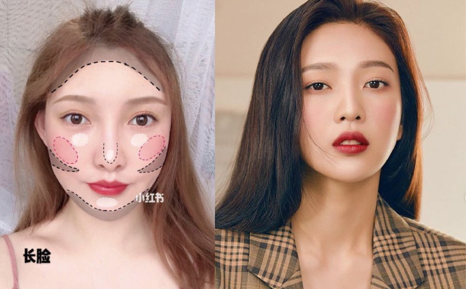長臉女孩修容重點在於「髮際線和下顎邊緣」。將臉的上下處增加陰影後,可以有效縮短視覺比例,另外,透過眼下打亮與蘋果肌的腮紅,也能自然地將目光集中在臉中部,同時達到澎潤效果。