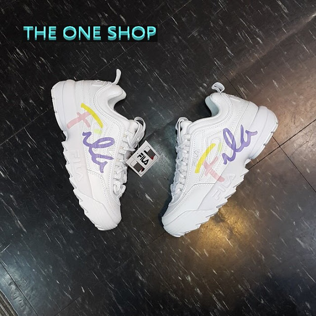 FILA 這款白底的老爹鞋十分特別,彩虹色的 FILA 彩帶字樣,讓你每天都能帶著繽紛的心情出門~