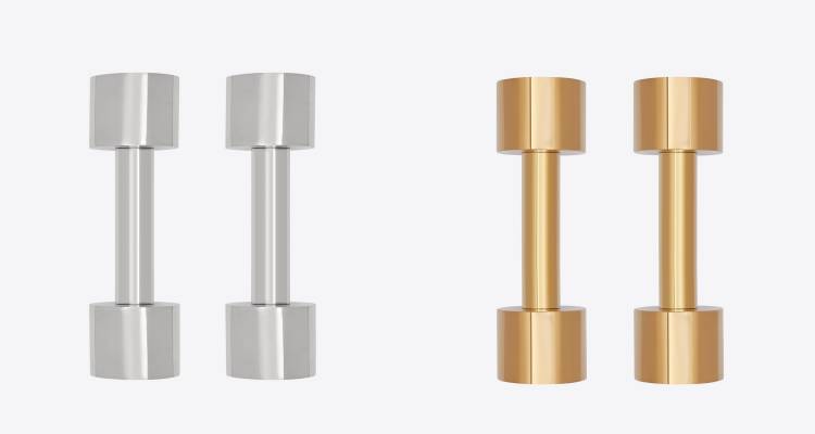這次 Saint Laurent 自身品牌設計的啞鈴完全發揮了浮誇奢華精神!品牌運用黑白兩色的大理石呈現,讓這兩款啞鈴網全滿足網美想美拍的慾望,另外品牌更設計全金色及全黑的金屬啞鈴,完全打破健身器材不美麗的印象!