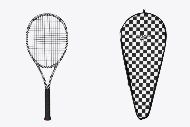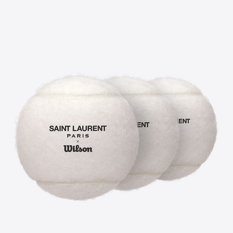 Saint Laurent 與網球品牌 Wilson 合作的球拍套組,從皮套到球拍全用黑白配色做設計,而過去都是以螢光色為主的網球,這次也走極簡風!將球體的本身以黑白方式呈現。