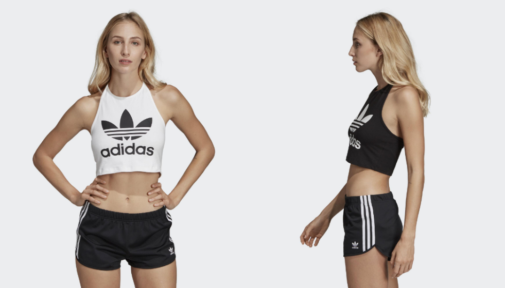 接下來我們也來看看 Adidas 愛迪達的運動服飾吧~下面這款 Adidas Original 的背心小編私心覺得非常美,性感的露肚、繞頸綁帶讓這件運動背心穿起來相當時尚,穿著去運動、健身都超吸睛!如果不敢露出那麼多肌膚,搭個牛仔外套或運動系外套也會非常有街頭潮流感!