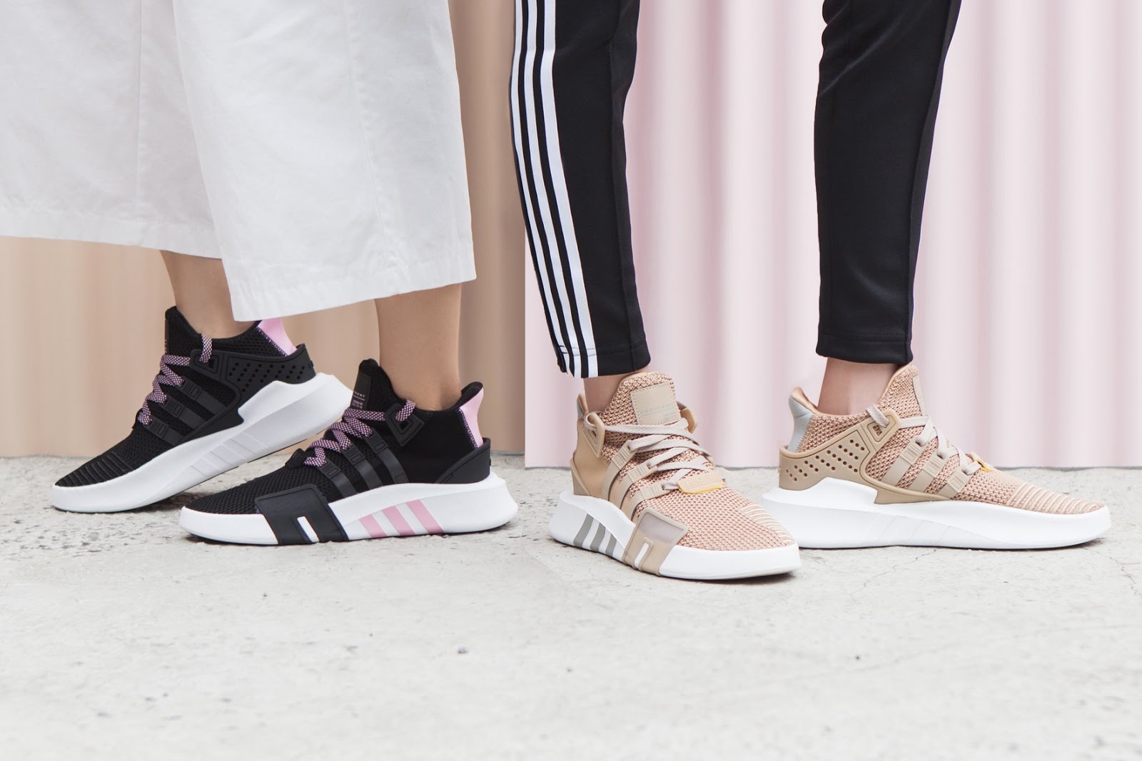 如果覺得前面兩款太容易撞鞋的話,可以嘗試這款 EQT BASK ADV!這雙Adidas EQT BASK ADV 直接下殺六折,真的省超多,黑、白、粉配色與籃球鞋型的搭配也很特別,尤其延伸到鞋底側面的愛迪達經典三條線真的很搶眼,又是一款增高卻不顯笨重的美鞋啊~