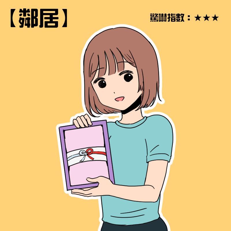 因為日本有新住戶要送房東、鄰居小禮物的文化,雖然居住在大樓之中的房客,房東都會委託房屋管理公司,關係比較疏遠所以幾乎沒有來往。但如果你住在小型共住區域,有時候會遇到新鄰居來送禮的狀況喔。