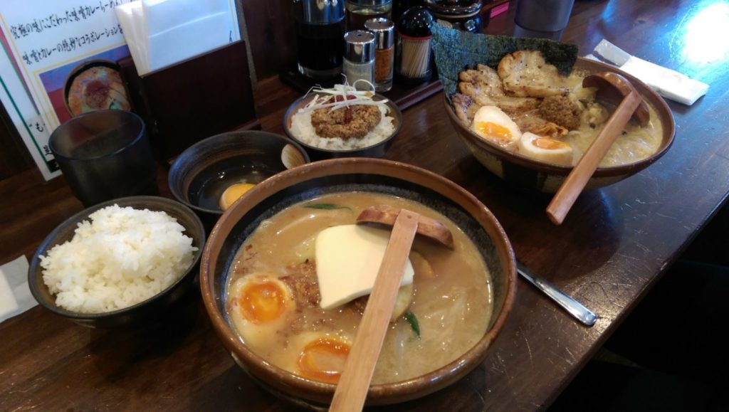 不知道你在日本吃拉麵時,有沒有發現旁邊的日本人的餐桌上除了一碗拉麵,可能還會有一份餃子跟一碗飯。對於台灣人來說,拉麵跟飯都是澱粉類主食,基本上餐桌上只會出現其中一樣。但在日本,很多拉麵店都會提供白飯或是炒飯。一方面是因為怕客人吃不飽,但只吃麵會膩,所以有些店家提供飯給客人。漸漸就有了「拉麵飯」(ラーメンライス)這樣子的組合。後來,有人把白飯加進湯裡面,發現也是非常美味,變成愈來愈多人追求這樣的吃法。