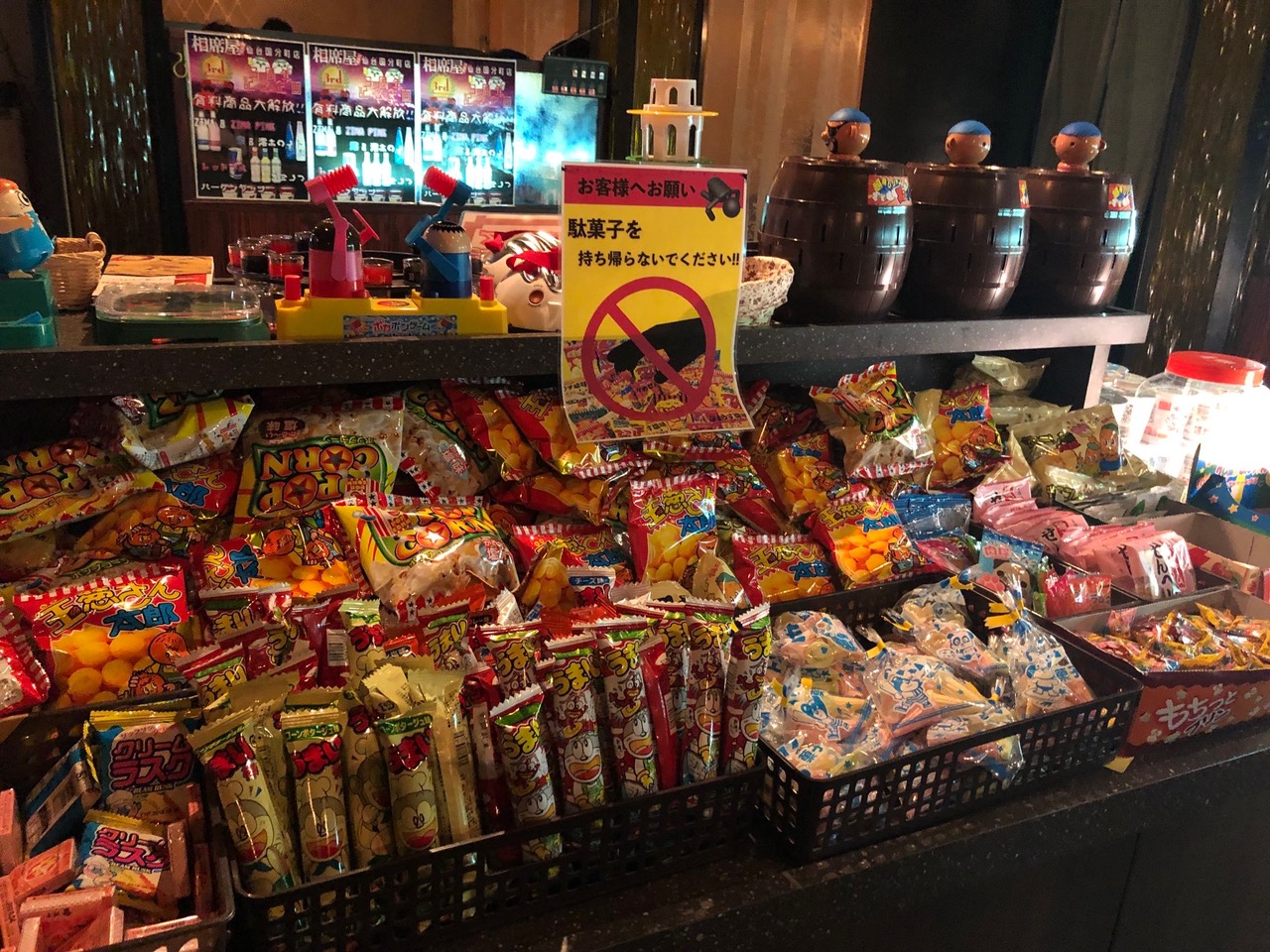 不過店舖也有提供額外收費烈酒以及正式餐點可供享用。店內也像日本KTV一樣,提供有趣玩具提供饕客們使用炒熱氣氛。來到此地,只要你日文程度可與日本人日常溝通,與姐妹們遊日孤單想脫魯,不管是否有無社交障礙,脫魯成功機會可是非常大。