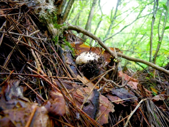 (剛露出地面的松茸,正是採收的最佳時機 photo by Hamatti )