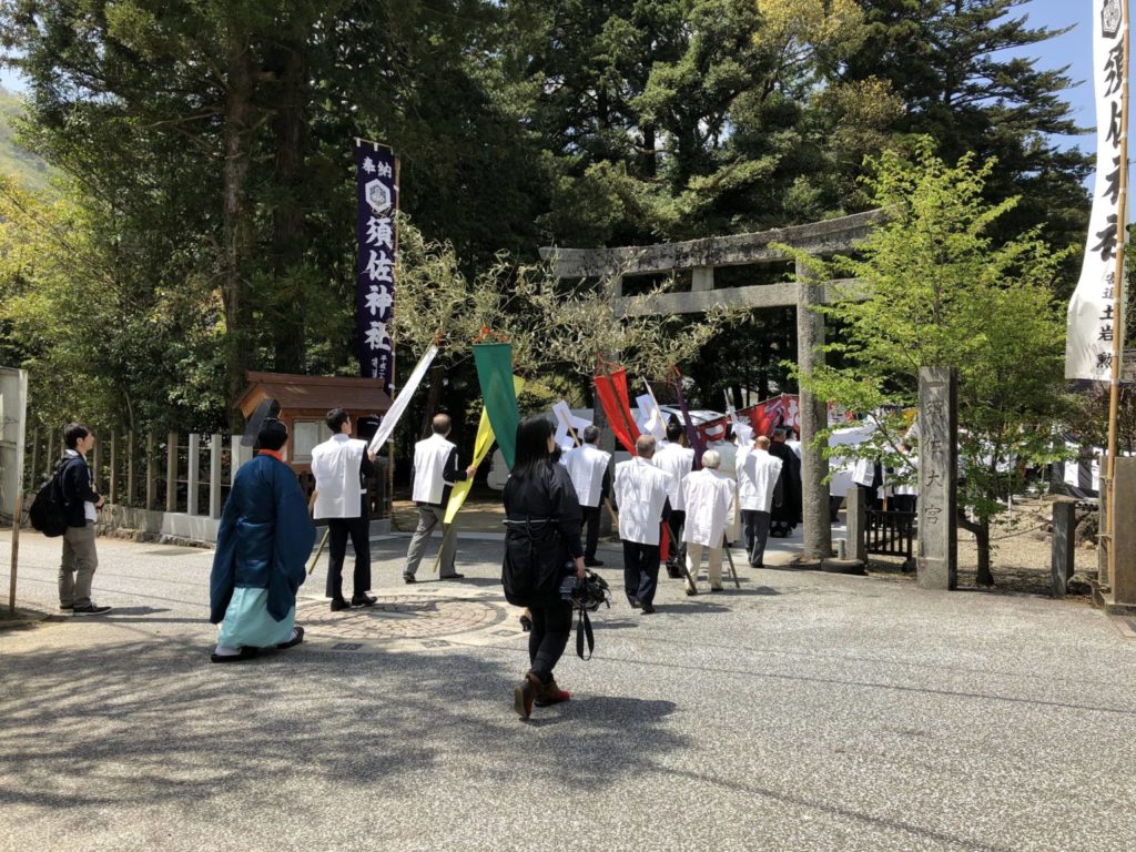 例祭主要是讓須佐神社供奉的主神『須佐之男』能夠到就位於對面的『天照社』與姊姊天照大神見面,而進行每年一度的祭典活動,由宮司們一路保護著神體前往天照社,再護送回須佐神社,全程莊嚴肅穆,有祭典特有的神秘色彩。