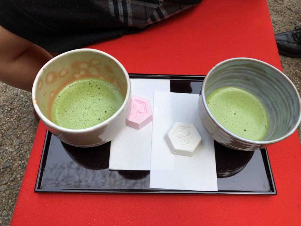 (現場免費提供的抹茶與點心,一起感受祭典的熱鬧。)