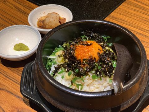 中秋套餐還有以蛋黃象徵「月圓人團圓」佳節意象的月見拌飯,店家選用生食等級的生蛋黃,拌入飯中不僅吃的到蛋香,搭配現烤和牛的油脂更美味!