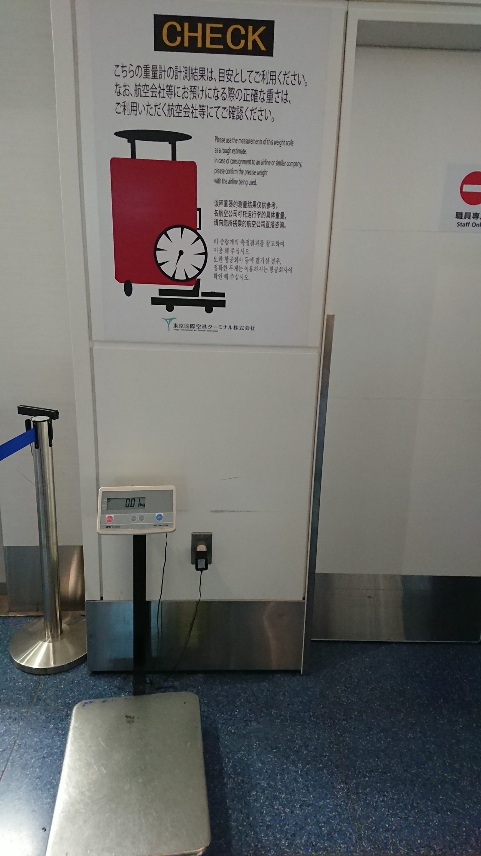 3F 行李秤。登機前先秤一下隨身行李有沒有超重。當場超重加的錢會比事先付的錢多。