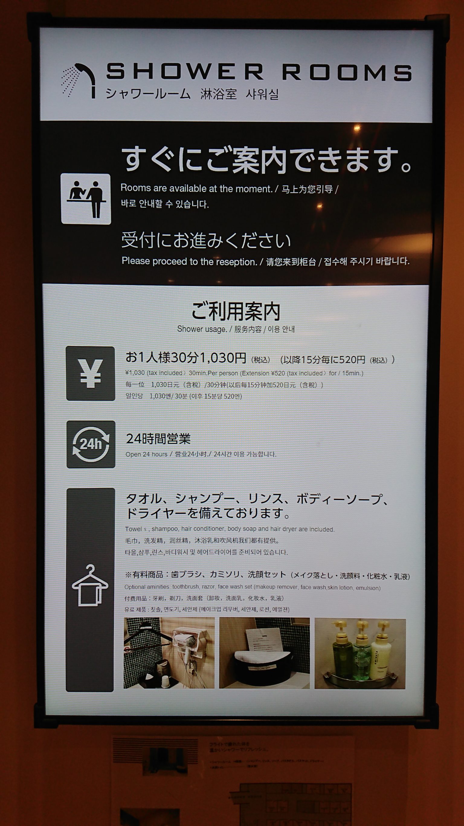 2F 有計時收費的淋浴室。裡面備有吹風機、毛巾!近日越來越熱門,有時候需要排隊一下。跟隔壁的Tully’s Coffee有合作,用完淋浴室可獲得200元飲料折價券。