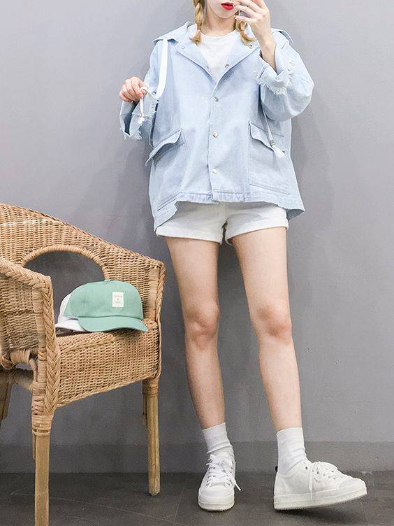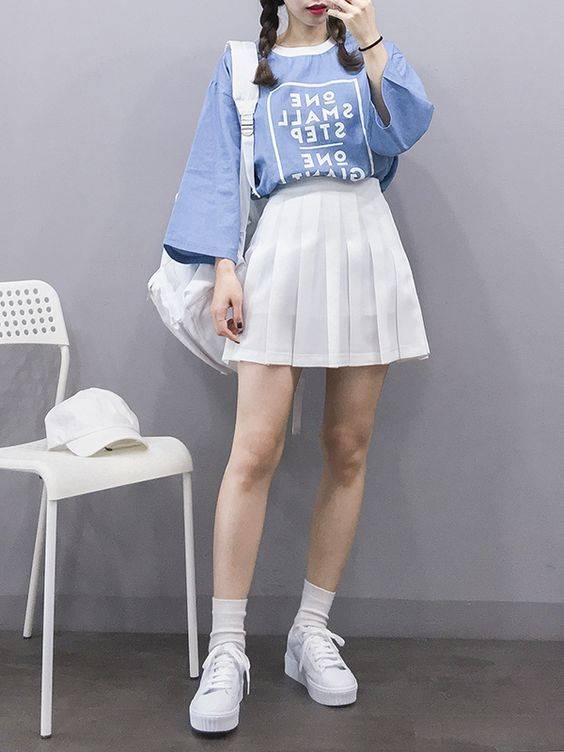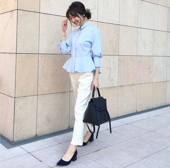 2. 粉藍色系的衣服穿搭,可以加上一件灰色的裙子,或者是白色的連衣褲,看起來就不個顯年輕也能讓人看起來更柔和。