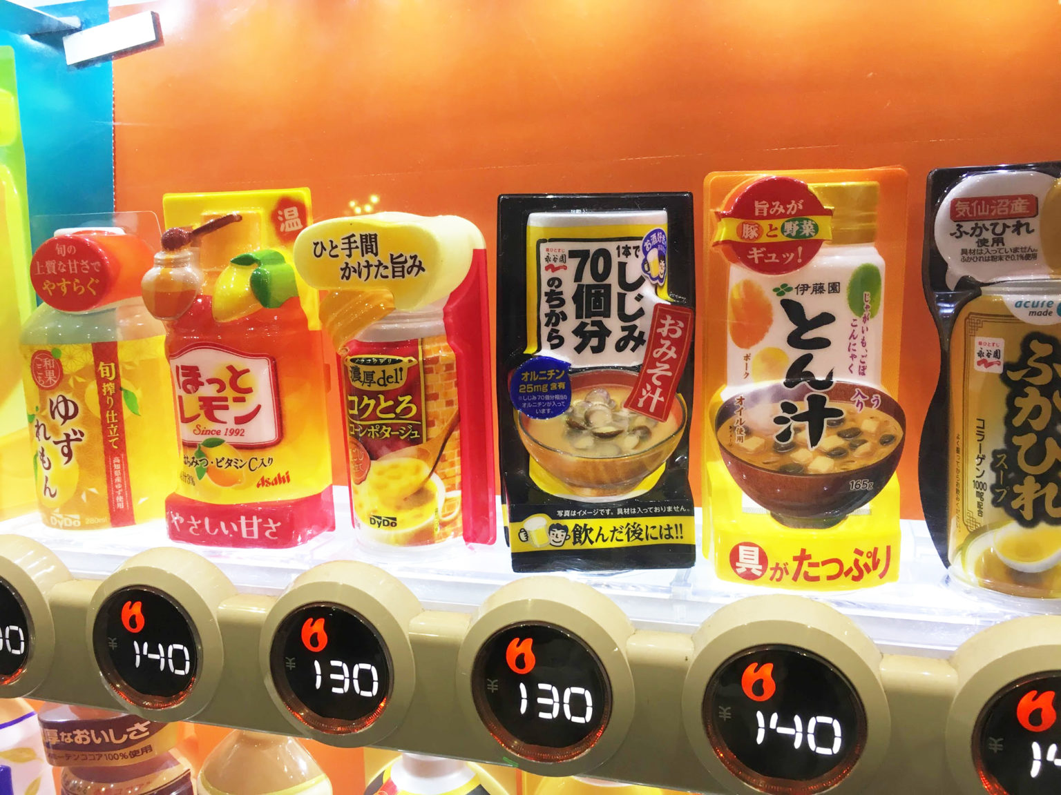 日本的自動販賣機乍看只販售著一般的冷飲,但其實在日本各地或是不同的時節,可是會販售著讓你意想不到的商品。在冬天時許多自動販賣機就會開始提供熱騰騰的飲料。