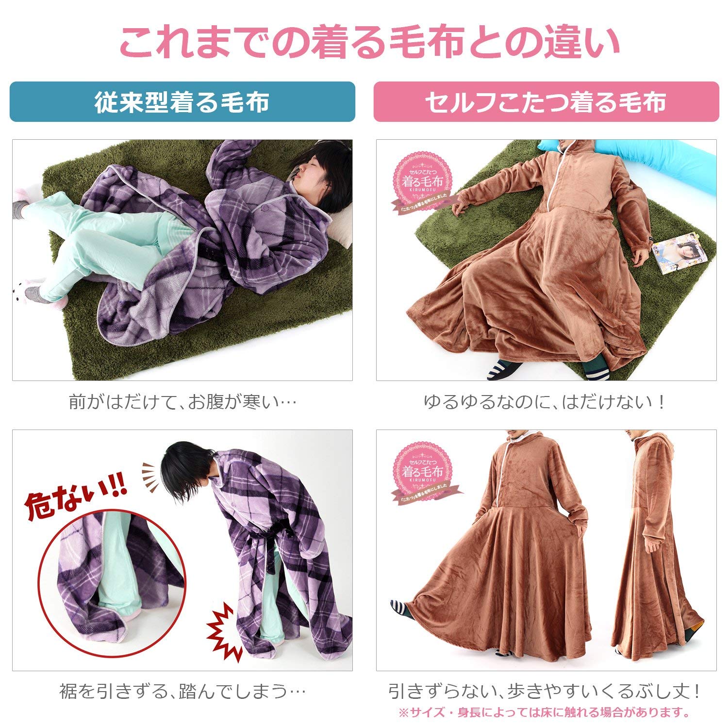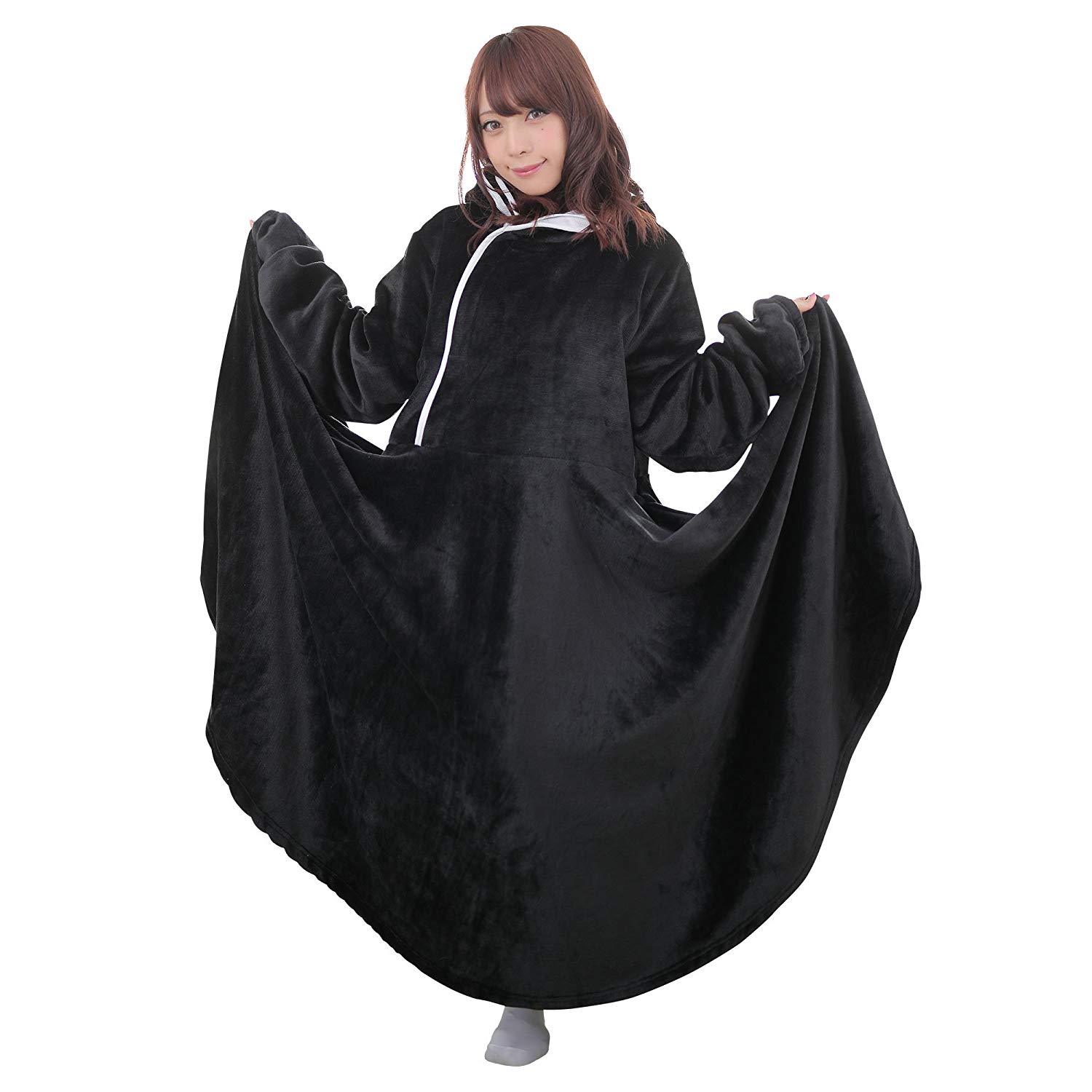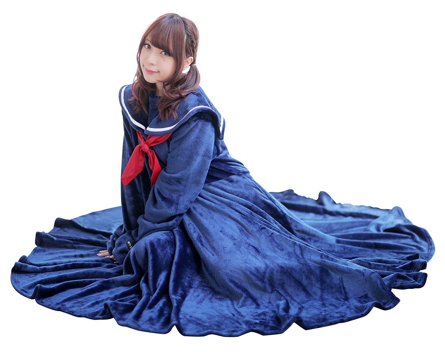 比起一般開合式的毛毯服,這款像超長裙的毛毯服讓你不管是站著或是躺著都能被全方位的包覆著。像是日本暖爐般讓你成為一個行動被爐!還有女高中生的制服等有趣造型可以選擇。