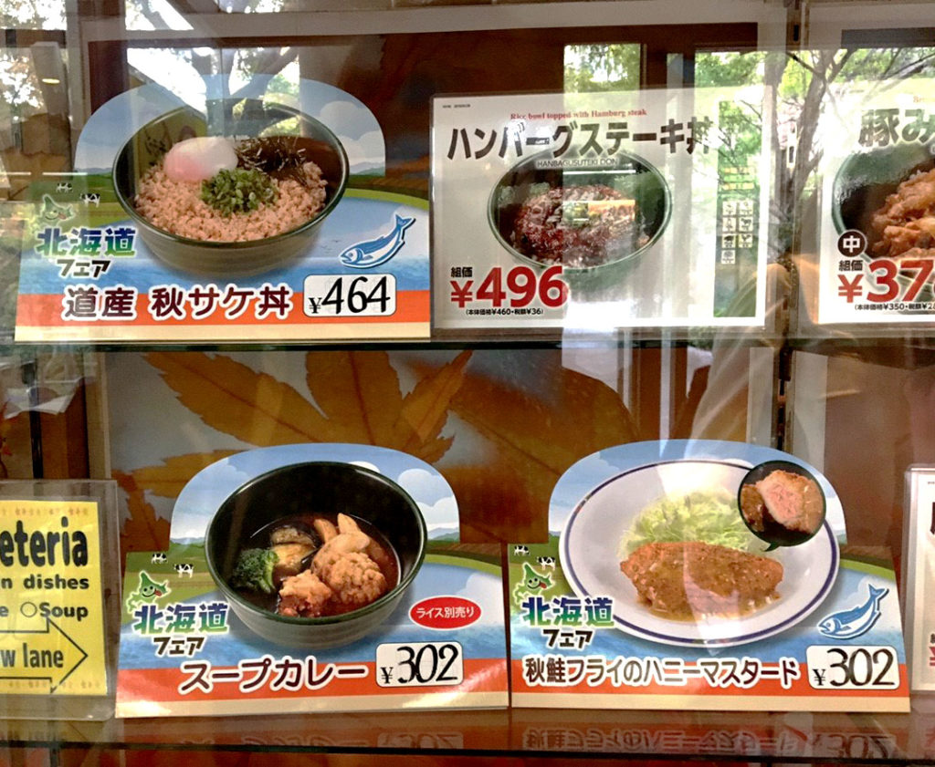 食堂外面張貼的北海道限定餐點示意圖。