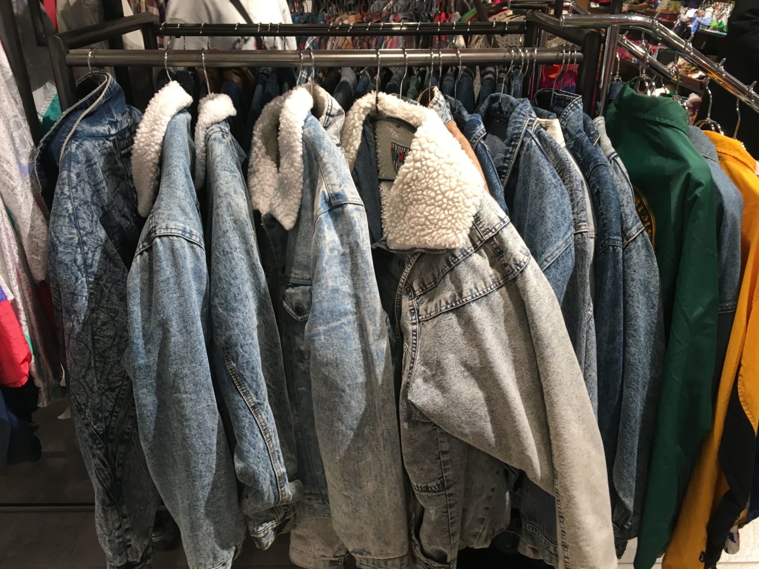 店外擺放著便宜的古著,比較偏向沒有特色的一般衛衣、襯衫和服裝。