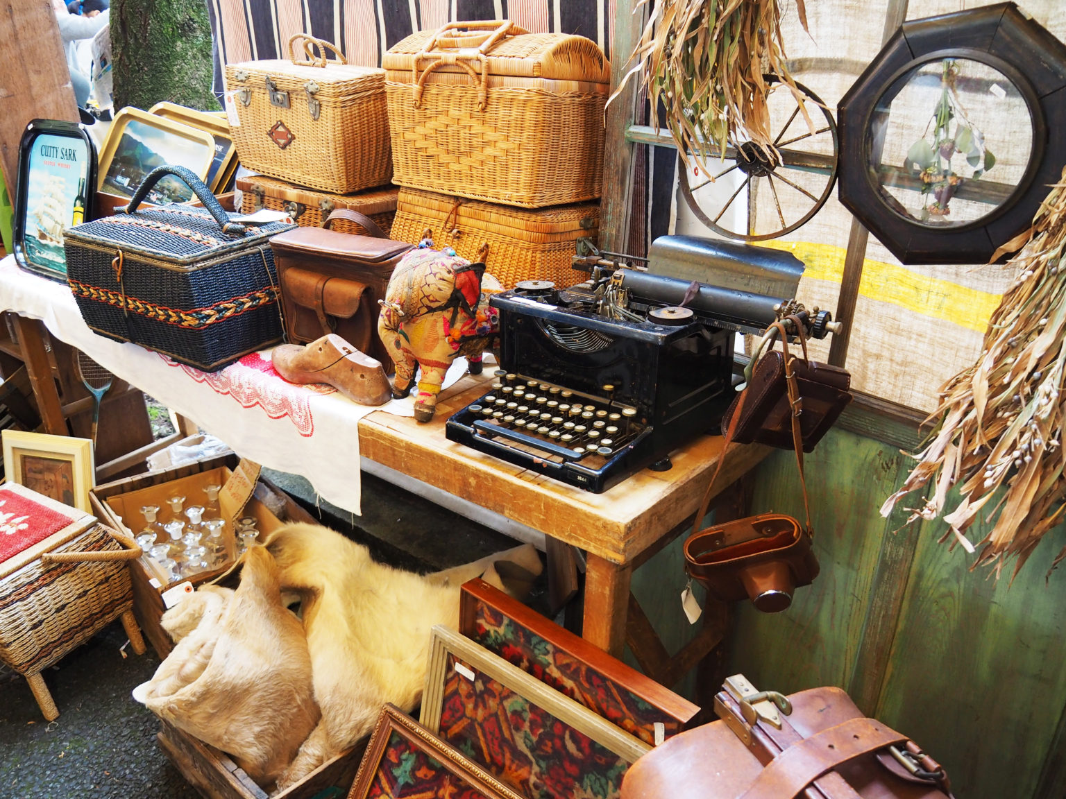 逛一趟二手市集就像來到歐洲一樣,打字機、古董包和許多有民族風情的擺設到處都是。