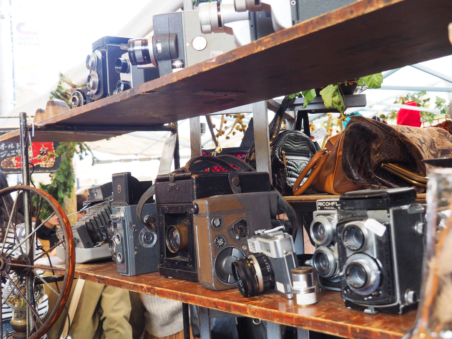 一旁開始出現許多歐式古董攤販,日本的古董之多,不用飛到歐美。在日本各地的市集都可以看到許多歐洲的老古董或舊物。