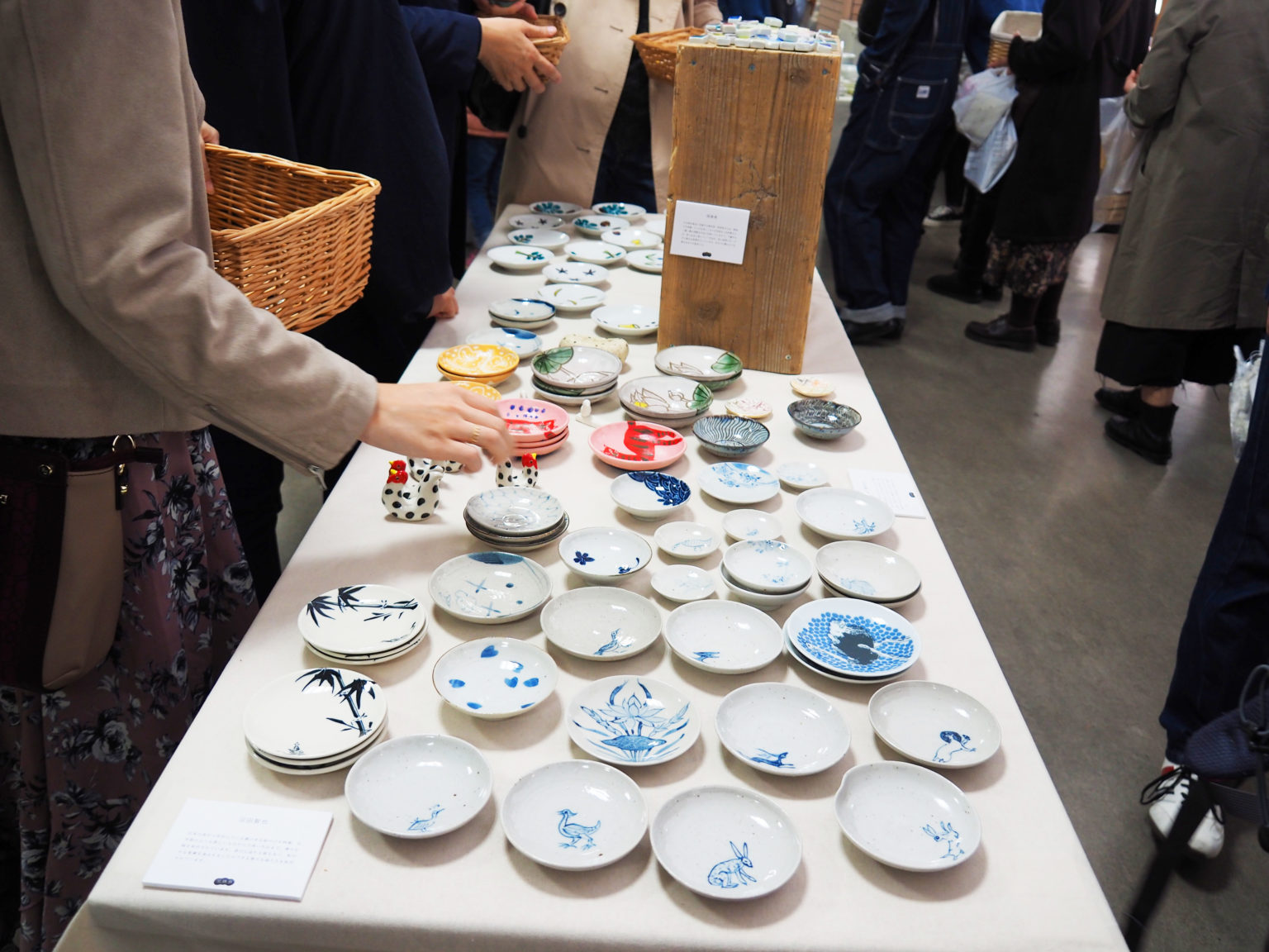繞進建築物內可以看到搶翻天的「東京豆皿市」,豆皿就是小如沾碟盤的盤子,有許多人專門在收藏日本陶藝家製作的豆皿。更有許多陶藝家擁有眾多的粉絲,我下午逛到「東京豆皿市」時,有些桌上就僅剩寥寥的盤子,比較好看的藝術品早被掃光。