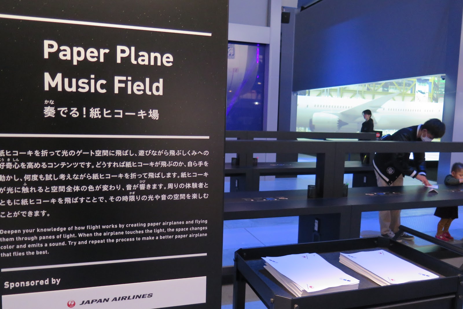 ▲「紙飛機音樂空間 Paper Plane Music Field」展區,摺出兒時玩伴紙飛機,飛越數道光門,其中音樂會隨高低變化而不同,顛覆對紙飛機的想像,創造屬於自己的音樂空間