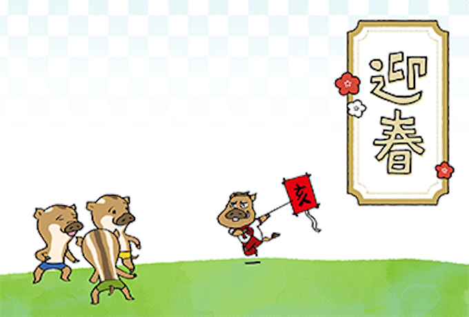 大部分的人對於豬的印象總是「好吃懶做」,我想這大概就是因為被飼養的家豬總是被餵得飽飽、每天躺在那邊的形象所致吧~所以豬年總是以「肉肉、可愛」的意象呈現與祝福,但對日本人來說呢?豬年的野豬象徵著勇猛又有衝勁,他們甚至喜歡用「豬突猛進」來形容勇往直前、無所畏懼的人呢!
