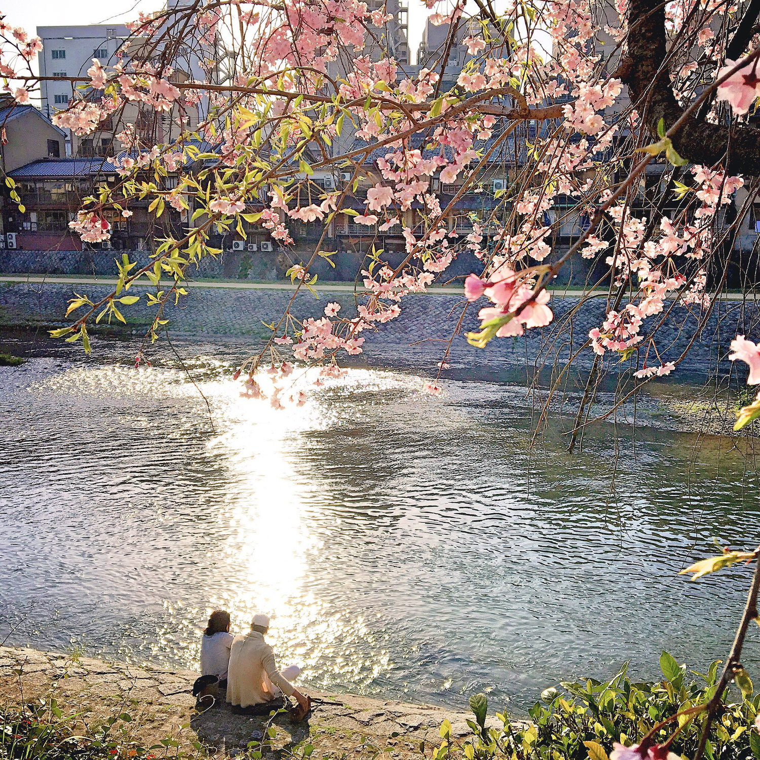 從白川南通持續向西前進,走到底就能見到鴨川。來到鴨川,第一個映入眼簾的必定是坐在河邊的情侶們了。彷彿遵守著潛規則一般,每一組人都隔著相同的間距。這些情侶被稱為「鴨っぷる(kappuru)」,與情侶的日文「カップル」為諧音。若想前往對岸,往南可接四条通,往北走三条通,都可以通往對岸的先斗町,享受夜景與巷弄裡的隱藏美食。