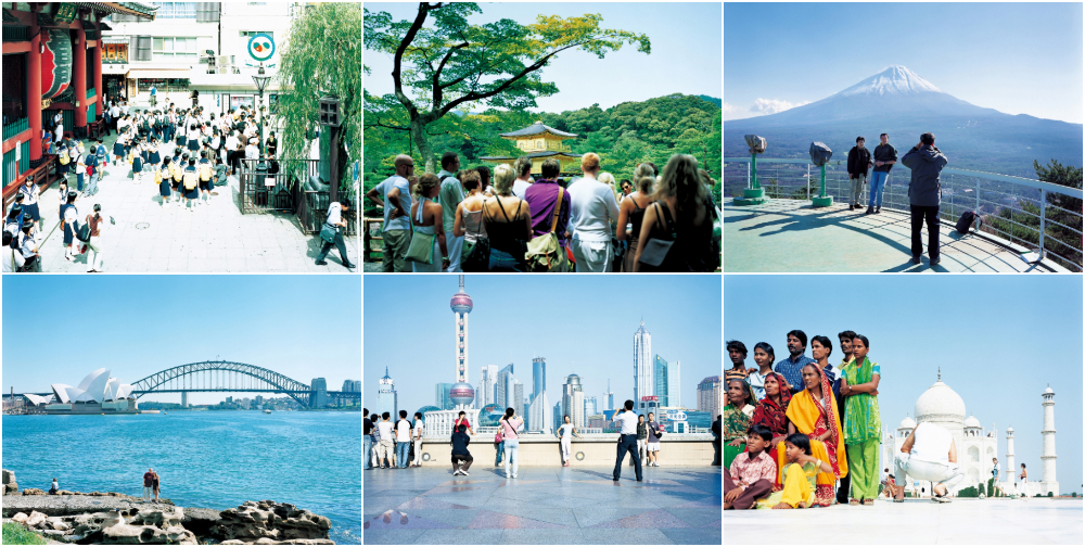 2007 年,瀧本幹也創作的個人系列作品《SIGHTSEEING》記錄下世界各地的觀光景點,透過寫實的視角讓人看見理想中的觀光與現況的差距。在他一貫清透的視野中,我們看見的不是耀眼絢麗的巴黎鐵塔、泰姬瑪哈陵和上海外灘,而是密密麻麻的旅客、成排的觀光巴士等現實的觀光情境,令人不禁深思:將生活中的一切理想化,透過後製加工營造出不同於真實的世界,真的是好的嗎?