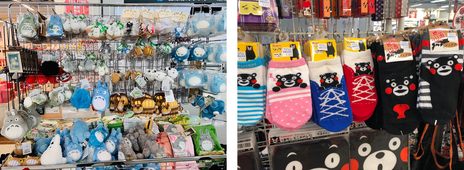 ▲伴手禮店「豐前接到鄉村店」鋪集結北九州各地特色商品,必買熊本熊後背包