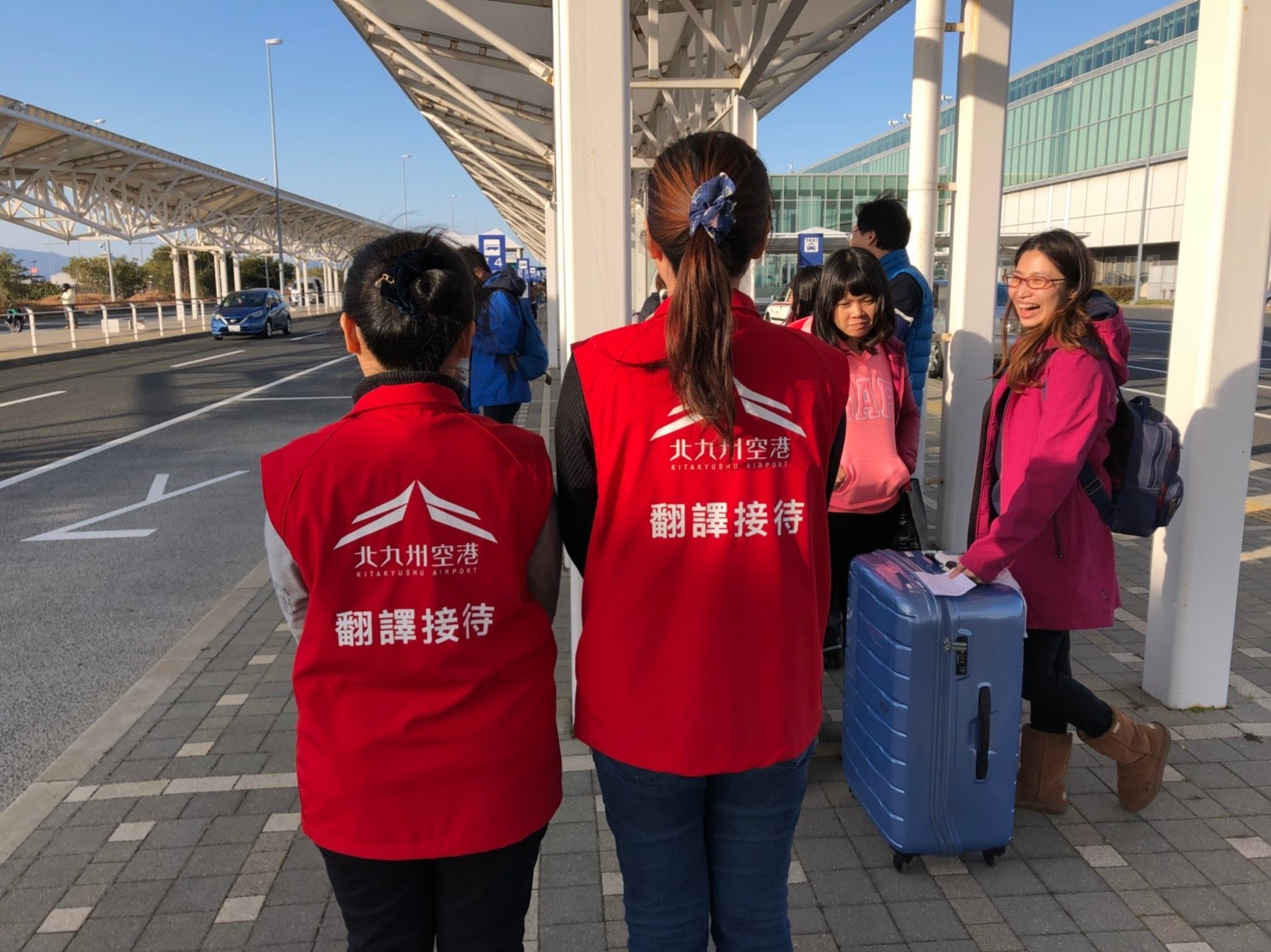 ▲抵達後搭乘巴士不會日文也不用怕!現場有北九州機場的宣傳小幫手,協助旅人中日翻譯!(右為:北九州旅遊達人坂金太太)