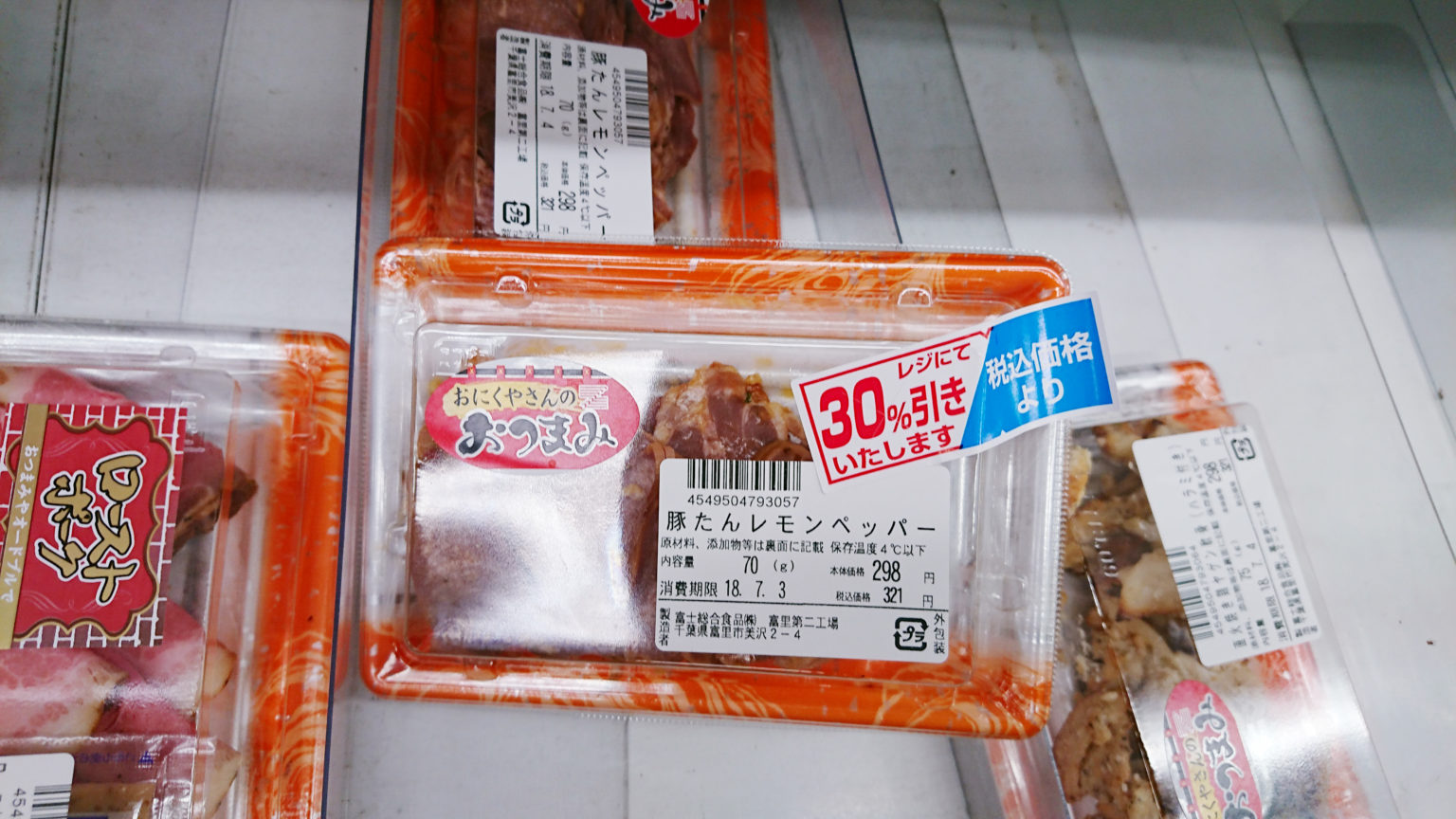 ▲即期生鮮常常會被貼上降價貼紙進行促銷。照片上為30% off的黑胡椒檸檬豬舌。