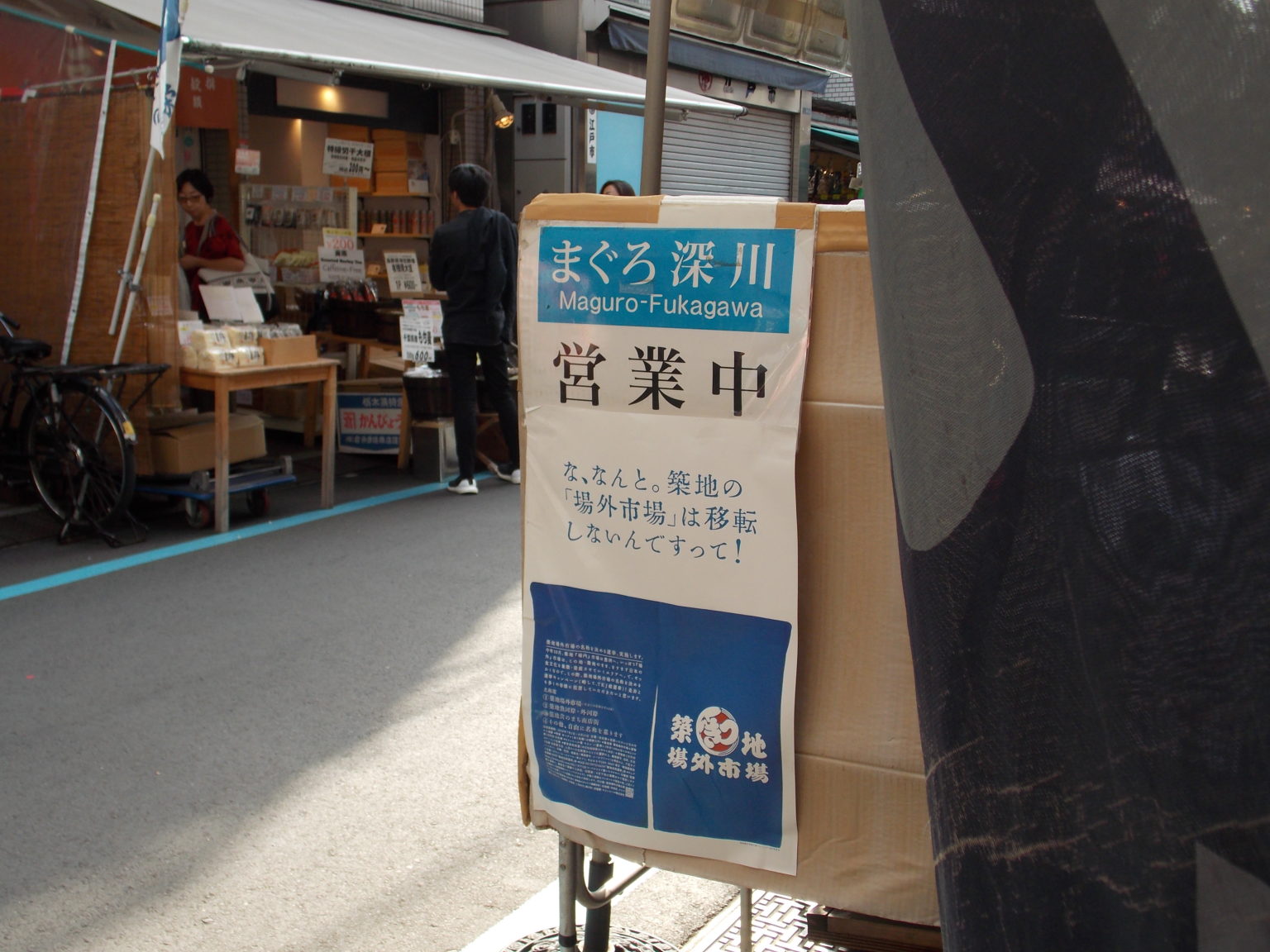 有店家甚至貼出了告示,以直白的口吻告知大家:「那個啊,場外市場沒有搬走啦!」
