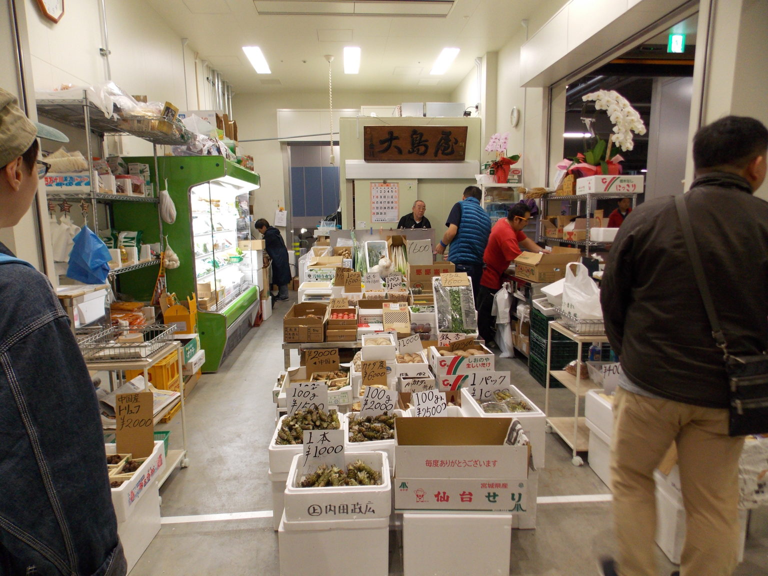 一走進水產中盤銷售區,就看到大家最關心的餐廳區。當時是上午十一點左右,餐廳區的人潮正值顛峰,名店「壽司大」更是早已停止排隊。