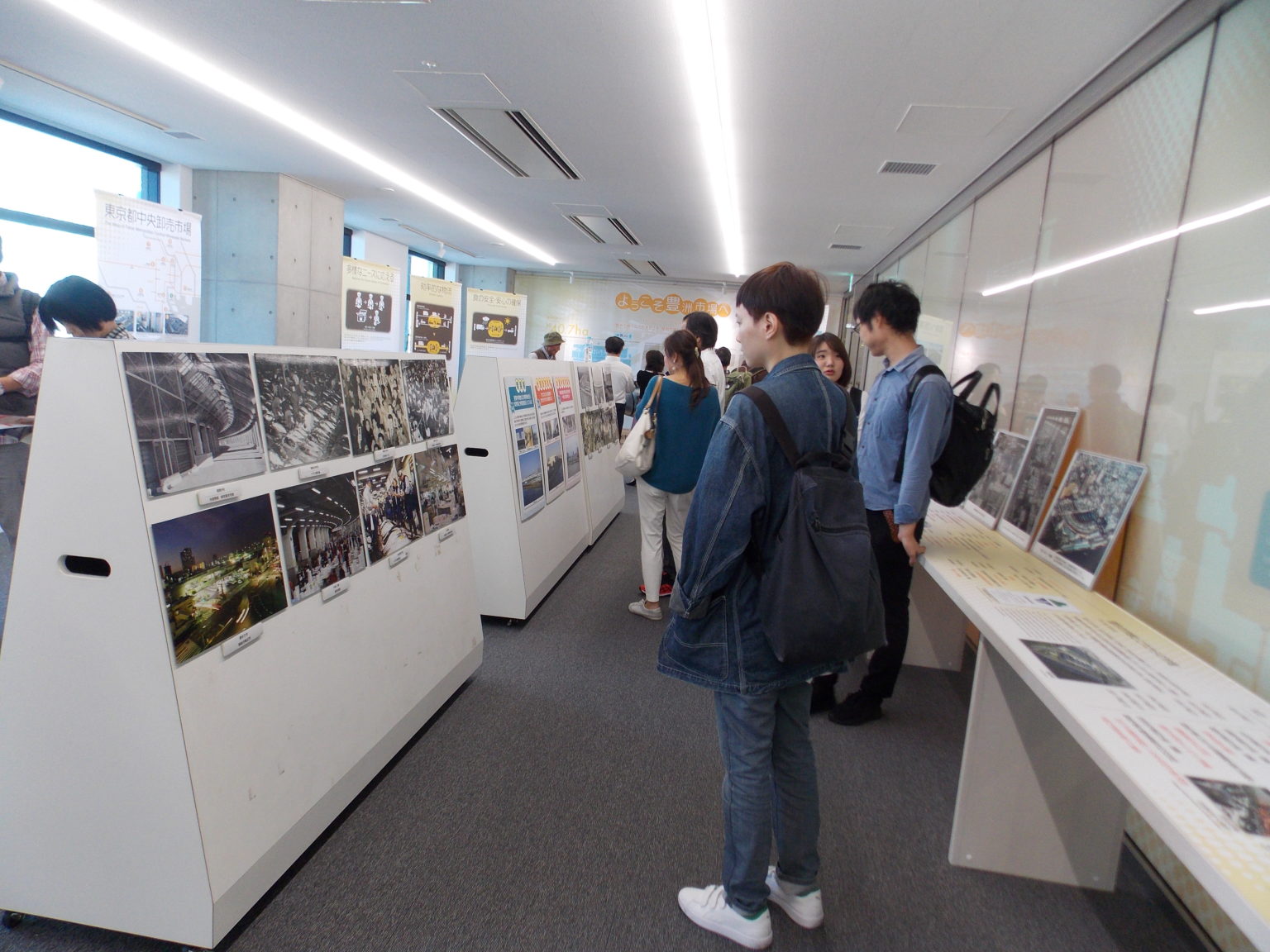 接著是這趟豐洲之旅最令人驚訝的一點了。延續前述的工作與參觀分隔機制,連在中盤銷售區也必須嚴格遵守,所有未經申請的一般民眾,都只能透過這個小小的見學台觀看中盤商採購的工作樣貌,完全不能下到工作區域,且大部份視野都被屋簷擋住,若是追求如築地場內那樣,想和中盤商走在一起選購水產的民眾可能要失望了。