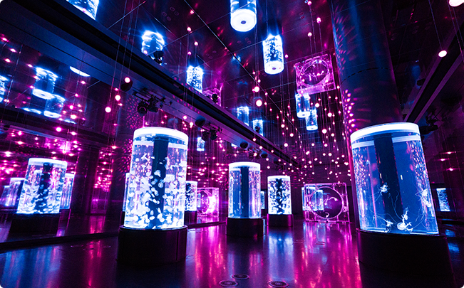 最後當然別忘了櫻花季期間充滿幻想的水母館,粉色的燈光與漂浮的水母讓人如同置身夢幻情境中,與櫻花和水母一同漫遊在春天的海洋裡吧!