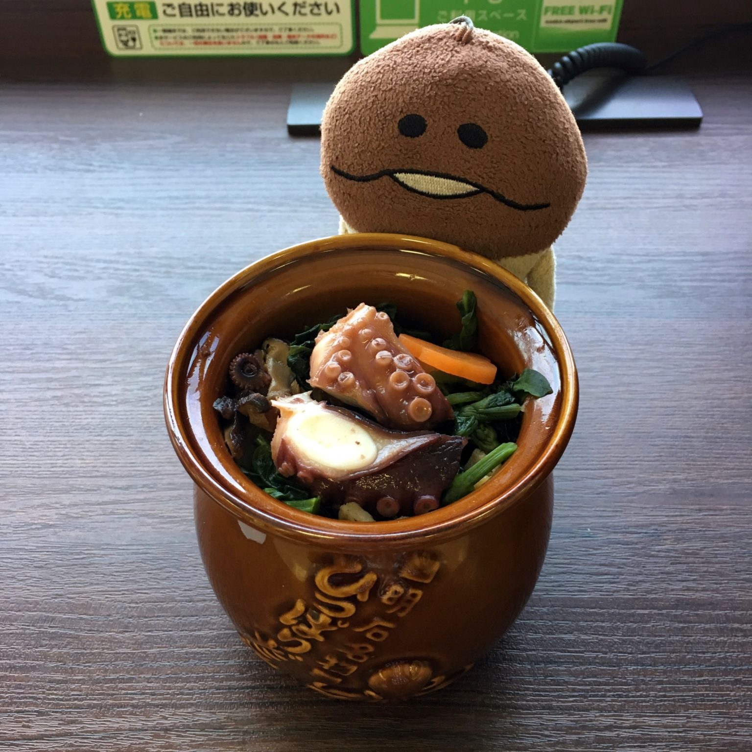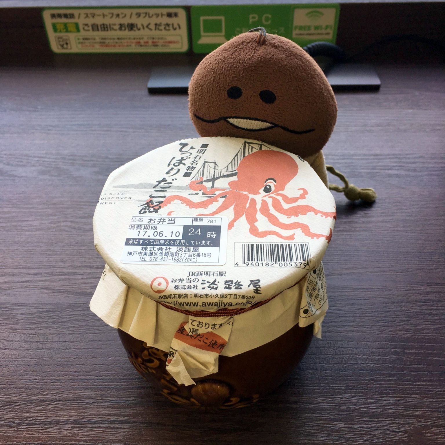另外也有包裝有特色的,像這款西明石車站的章魚飯火車便當,他就真的是用一個陶器的甕來裝的,吃完以後還可以帶回家作使用。