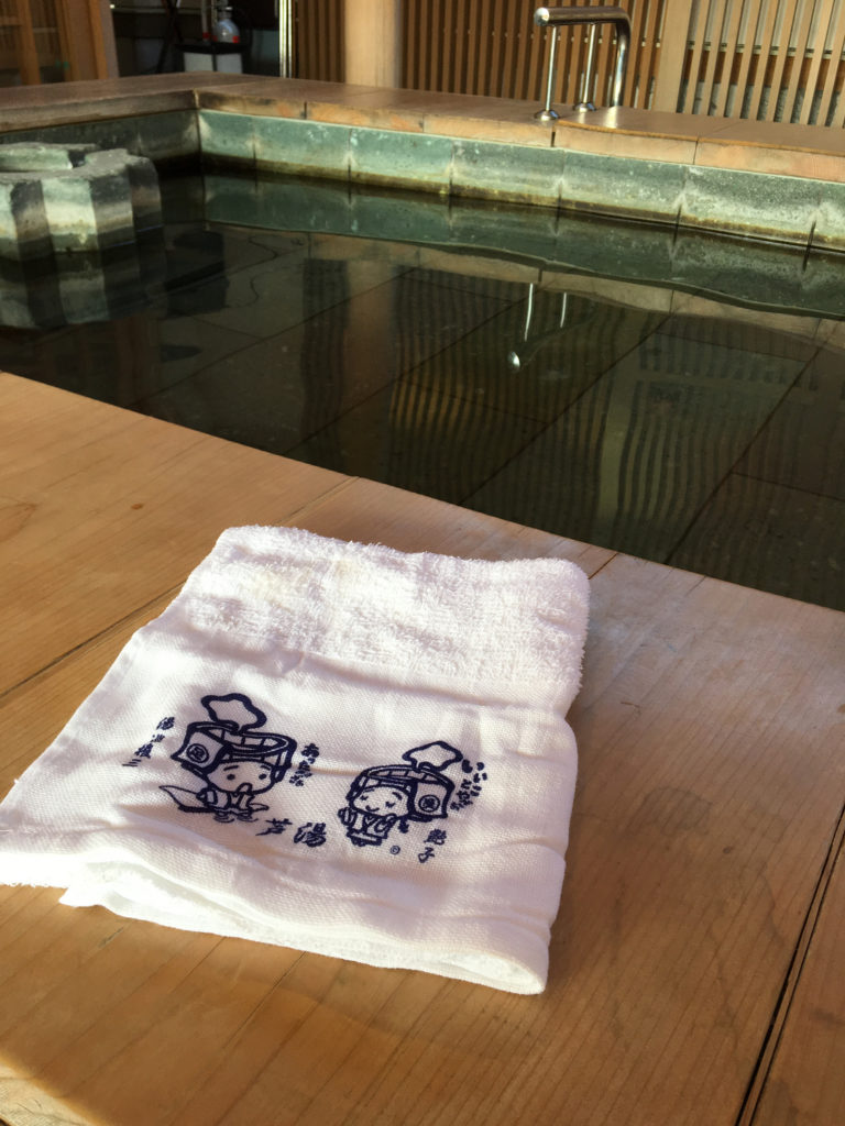 洗淨身體後,全身浸在溫暖熱水之中堪稱冬日一大享受阿!用來擦拭因熱氣代謝出汗水的毛巾在使用完畢後,可以放在頭上,避免毛巾接觸水面。