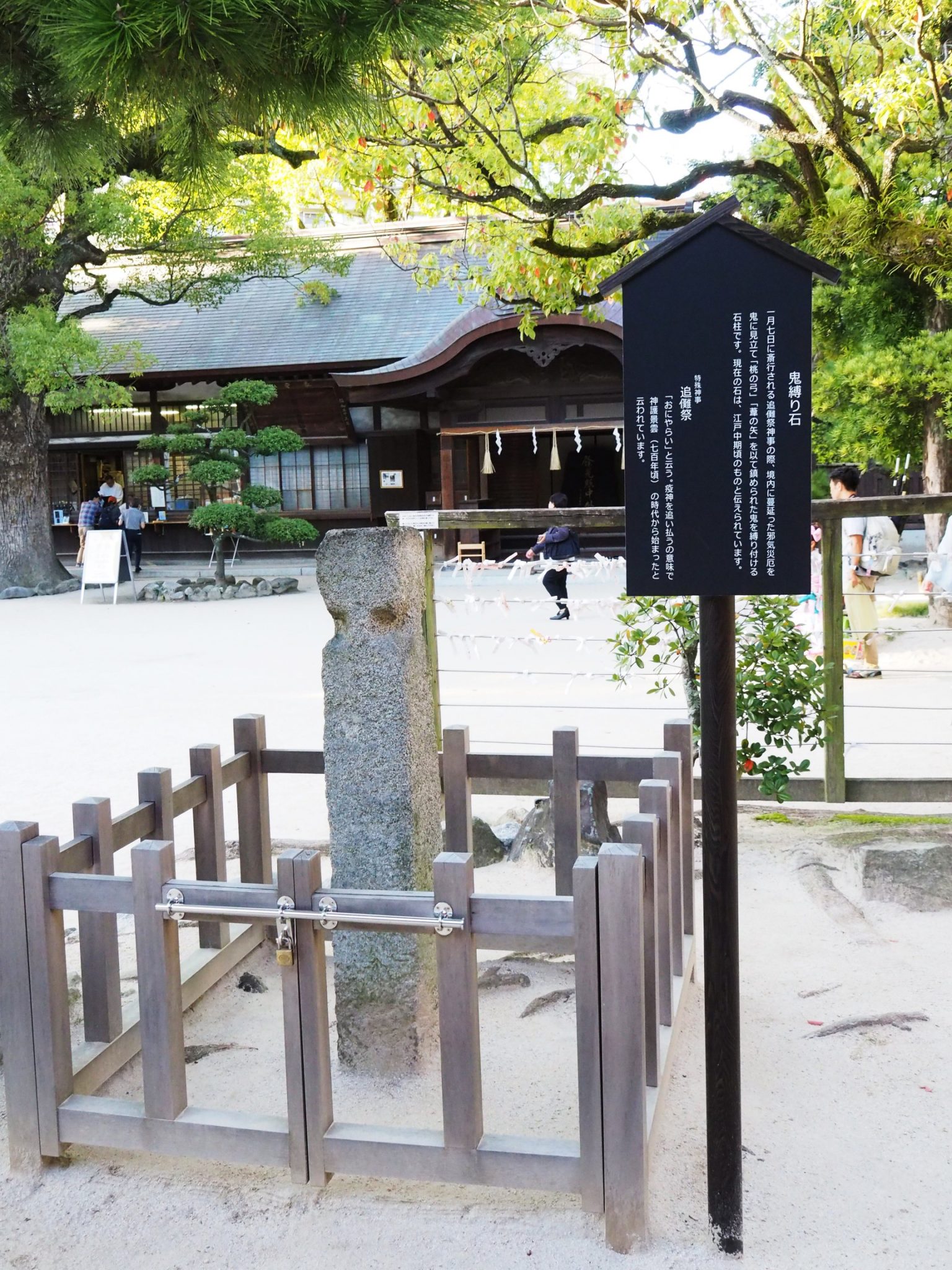 在本殿旁還有一根「鬼縛り石」,是用來鎮壓著在境內蔓延的邪氣與災厄。這根「鬼縛之石」的起源可追溯至江戶中期。