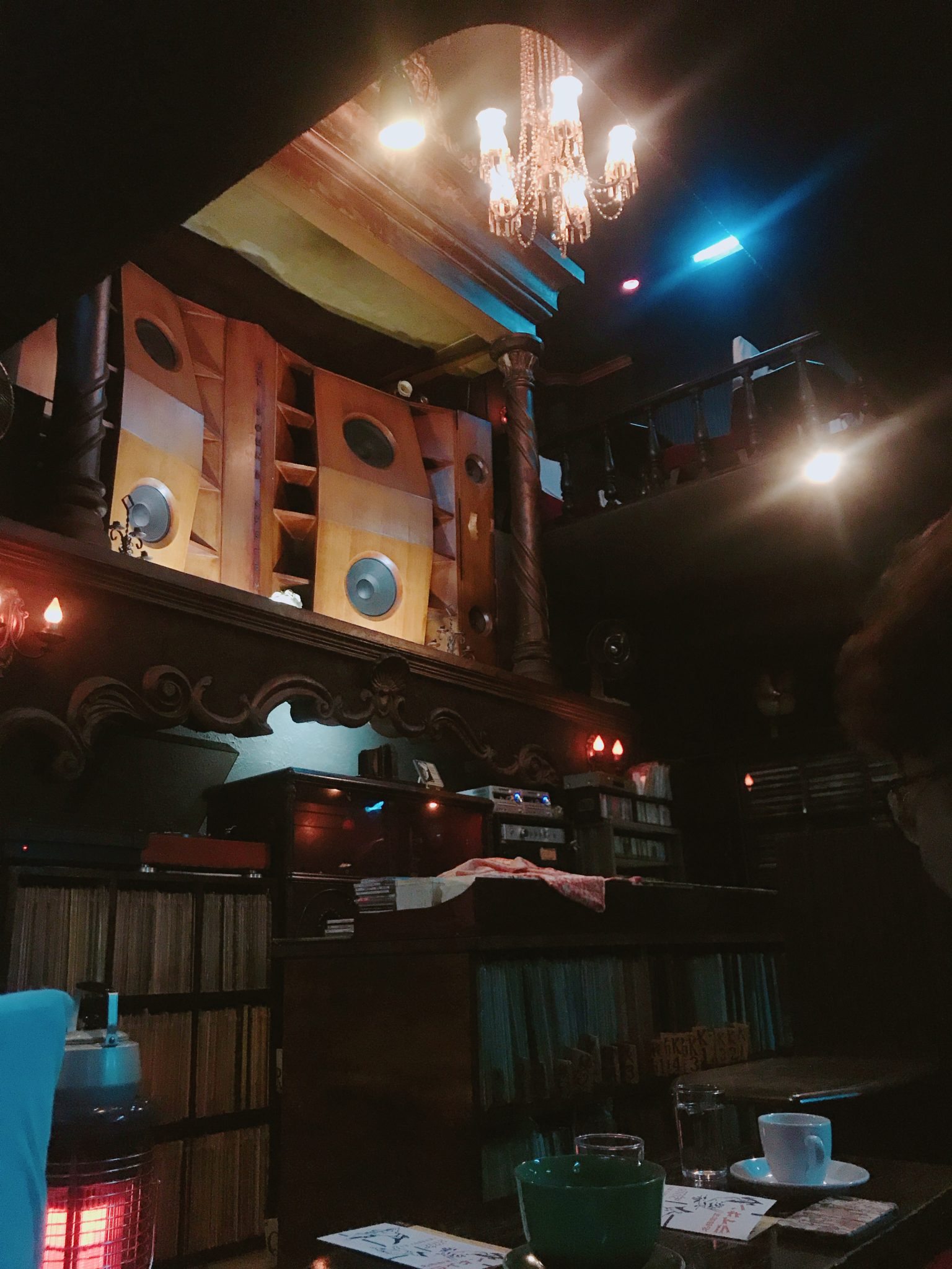 店內座位全部朝向同一邊,面對著兩層樓高的音響,它是這個空間唯一的聲音來源。店員每隔一段時間來更換黑膠唱片,主要是古典樂。不過,不懂音樂的旅人來到這裡也沒關係,雖然說禁止說話,但是跟空間融為一體之後,反而一點都不寂寞,反而透過音樂體會到前所未有的放鬆感。