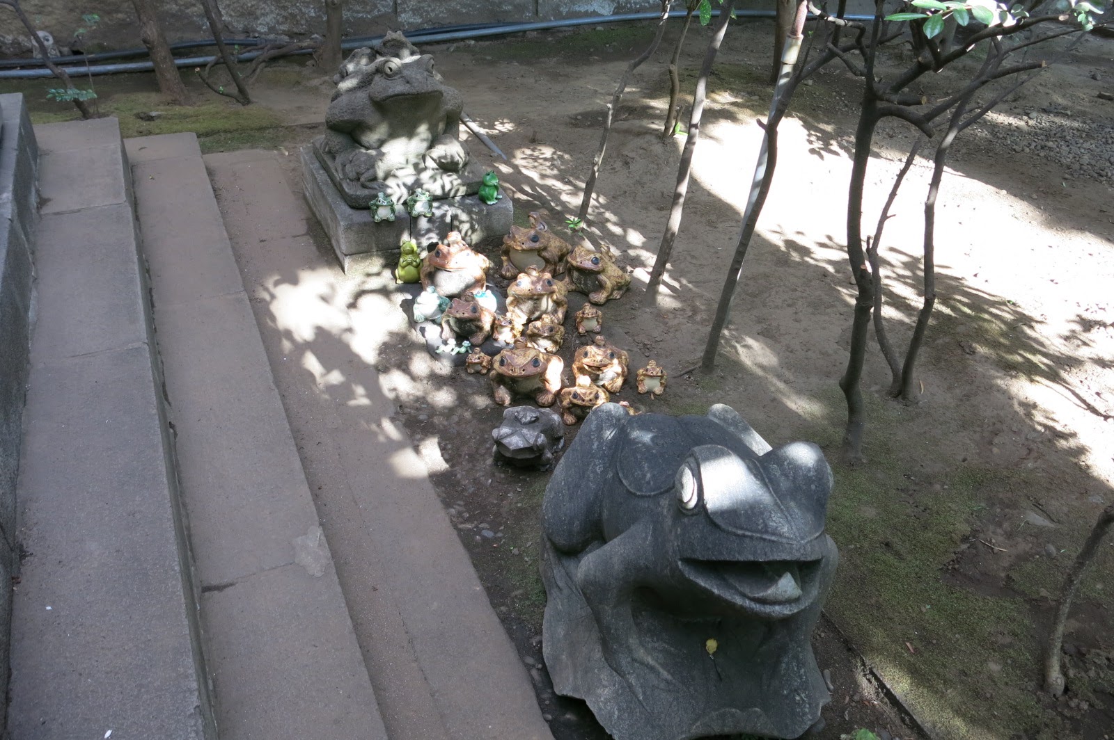 在墓碑左右兩邊,能夠看到一堆青蛙——其實,這些並不是青蛙,而是日本蟾蜍(ヒキガエル),會這樣擺置有兩種說法,第一是因為青蛙的日文與歸來相近,當初首塚就是歸回故鄉尋找身體,因此有這樣的雙關。第二則是因為平將門的女兒——瀧夜叉姬擅長使妖術操弄蟾蜍而設置的。在過去曾發生過綁架事件時,人們會特別祈求孩子們能平安歸來而供奉著青蛙,另外聽說被公司降職的人來這裡參拜的話,也有可能會平安回來本社。