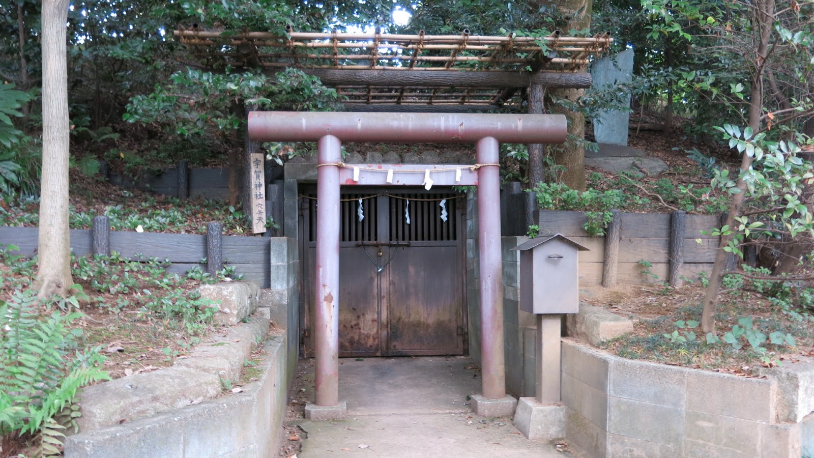 ▲在池子的一角有一個看起來詭異神秘的鳥居跟封鎖的鐵門,這是一個通往地下洞窟的靈穴,據說供奉著人首蛇身的弁財天女神。
