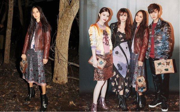 孫芸芸穿著皮外套與亮片裙、踩上短靴一身酷辣風格出席佈置成迷霧森林的Coach秀場,美國小天后selena gomez也穿了騎士皮外套與花長裙到場!