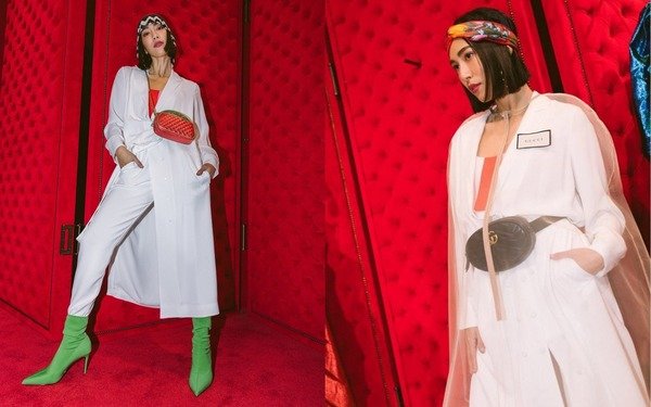 在Gucci的「手術室」秀場,蔡詩芸更用時髦針織外套搭配高腰寬褲與厚底鞋,呼應這次Gucci時尚混搭、多元主體認同的主題!