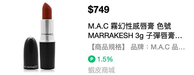 因為口紅一哥的推薦而在中國賣斷貨的M.A.C MARRAKESH,其唇膏顏色是土橘色調,塗上唇不但顯白,更增添了溫柔氣質。偏橘調讓黃皮膚的我們都能夠輕鬆駕馭。